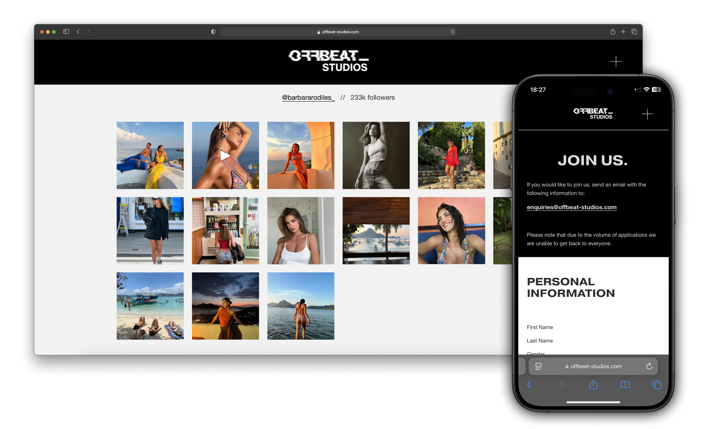 To complement their identity, we engineered a fully responsive website that showcases Offbeat's portfolio and streamlines the talent recruitment process. The site’s clean, modern aesthetic reflects their focus on creativity, with intuitive navigation and immersive visuals that showcase their expertise in fashion, art, music, and entertainment. From strategy to execution, we ensured the website is a seamless extension of their brand, inspiring their audience to engage with their innovative approach across all platforms.