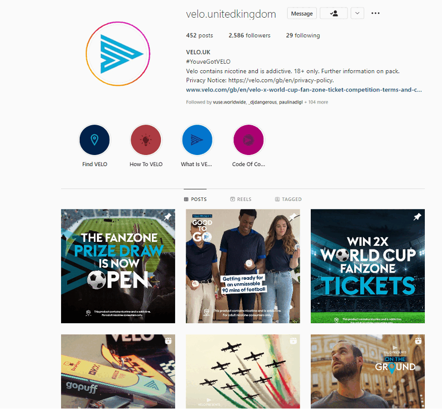 On socials we were not legally allowed to use ‘love’ as an associative word. As such the campaign strategy of raising awareness of VELO’s unrestricted nature, was instead conveyed through the ‘Good to go’ series. Showing influencers using the product in spaces where nicotine is not usually allowed.